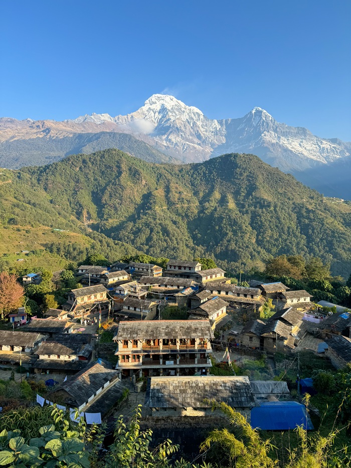 Η σημερινή διαδρομή μας οδηγεί στο παραδοσιακό χωριό Ghandruk, ένα απο΄ τα πιο όμορφα χωριά με τοπική κουλτούρα και εντυπωσιακή θέα στο Annapurna South. Η πορεία είναι ήπια μιας και έχουμε αρχίσει την κατάβαση. Το Ghandruk είναι ένα από τα αγαπημένα παραδοσιακά χωριά και η θέα των βουνών τριγύρω σου κόβει την ανάσα. Δεν τρέχουμε να φύγουμε μόλις φτάσουμε αλλά διαμένουμε ένα βράδυ να απολαύσουμε το χωριό και το τέλος του trek μας.